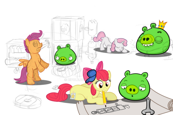 Scraps – Looking back at this, I can clearly see some things I'd like to fix (objects that don't quite fit the MLP:FIM style, Butterbar's schnoz and maybe also Shell Shock's, boring BG).