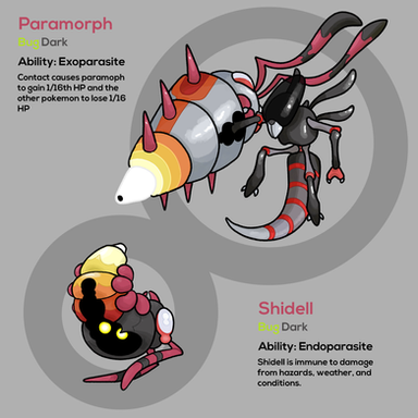 Apheed cling to trees and drain their life force, also dropping down on other pokemon to prey upon if the opportunity is presented. Apheed use their secreted excess life force energy to form an orb balanced on their rear to barter with ghost pokemon for favours, but will sometimes turn on the ghost pokemon to feed on their life force instead.