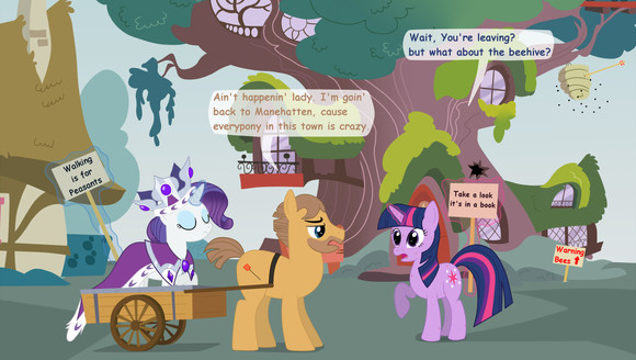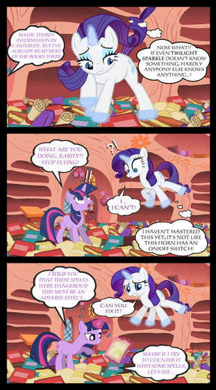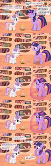 I'm thinking Sweetie is having some serious issues with her magic...Maybe inside a library made out of a tree isn't the best place for Sweetie to do her magic...