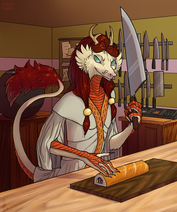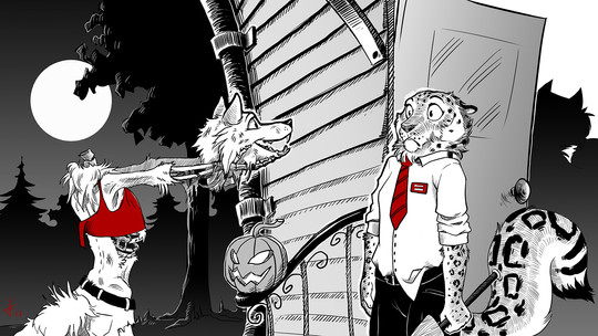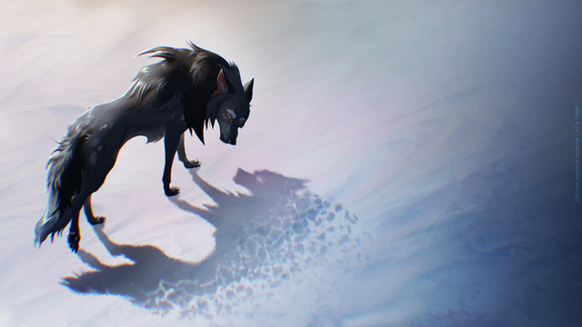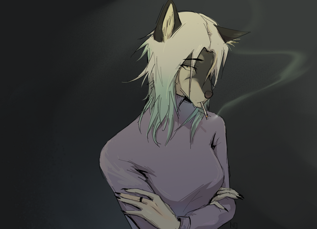 #fursona #anthropomorphic #calm #female #furry #ponytail #turtleneck #wolf #digital_art #high_contrast #closed_eyes #faellin