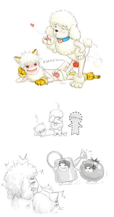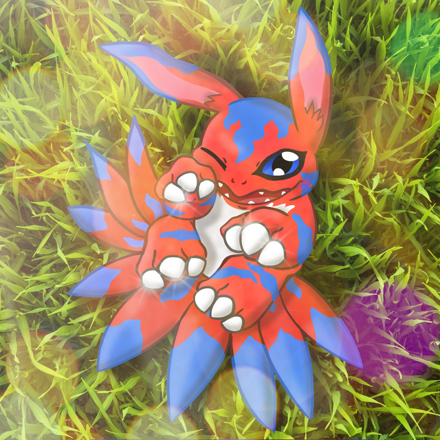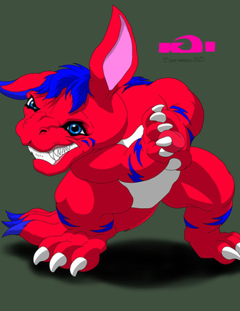 One of 2 pics I made for a digimon fanThe stupid program can't save gif files so the colours got distorted ><