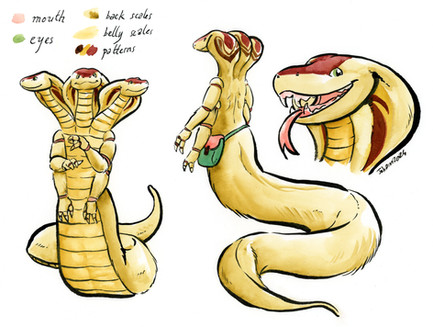 Considering his history with the sea I decided to make him a "sand lindorm", with thick, flipper like vestigial wings, small spines (because of his spiky hair) and a rudder tail tip