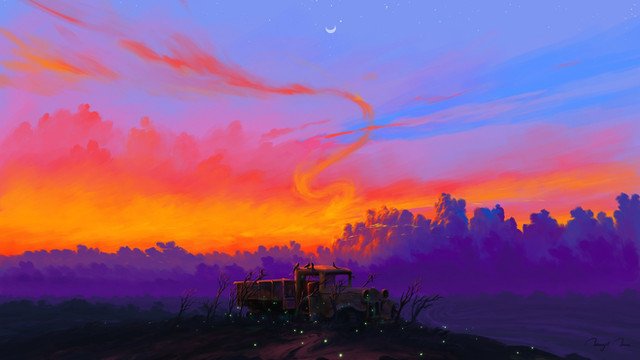 #2d #car #drawings #eve #nature #sky #sun #art #digitalpainting #drawing #illustration #painting #study