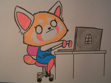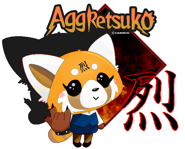 アッグレッシブ烈子 (Agguresshibu Retsuko (I messed up on this one–The official title only has a single G) (Text to the right): Aggressive Retsuko