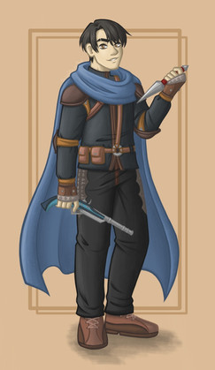 This is one of the party members that adventures with Satyr! His name is Mathias and he is the groups fighter.This was a commission from my party member. He wanted a drawing with all the gear he's collected throughout the game. That includes stuff like a bag of holding, boots of elvenkind, goggles of night, periapt of health, an animated shield, cloak of protection, etc. It was a lot of fun to see where to add those little things. He had me sketch some of the things on the side that he keeps in the bag of holding.