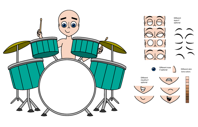 I made something for a contest. Spent the last couple hours not realizing that I gotta submit it for it to count. Not my greatest thing yet, but I've been busy with other interests as well as vacationing and stuff. Kicked myself in the butt for not starting earlier. Don't criticize me if the drums aren't right, I don't know squat about them, I just googled a pic and referenced off of that.Btw, this isn't really much of a sprite sheet, but it works the same way.