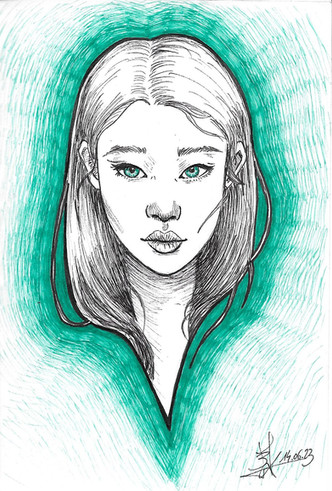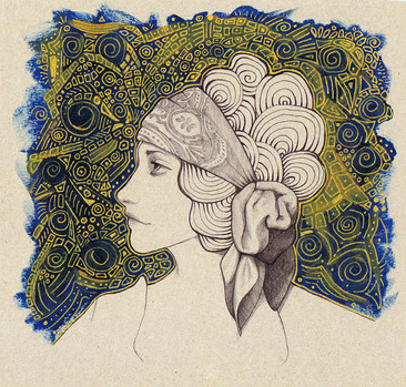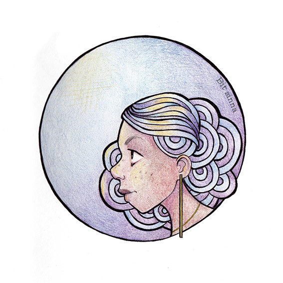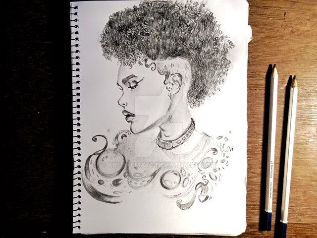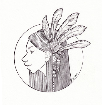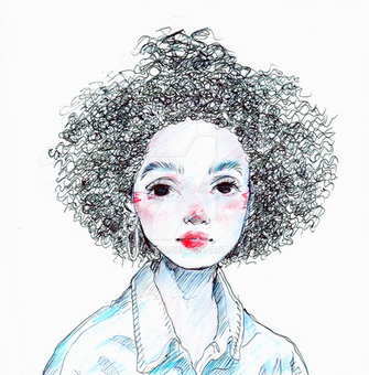 #curlyhair #fan #woman #backview #ballpointpen #ballpointpendrawing #drawing #featherfan #feathers #portrait #traditionalart #inktober2017