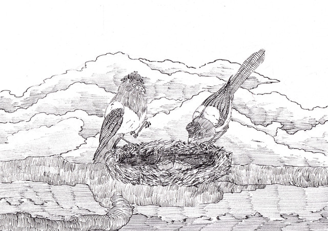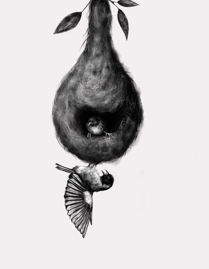 #ballpointpendrawing #bird #nest #perching #ballpointpen #blackandwhite #drawing #eggs #monochrome #nestling #traditional #traditionalart #tree