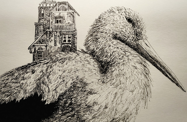 Small ballpoint pen drawing made in my travel sketchbook. Inspired by a beautiful book about the architecture of birds and insects: www.goodreads.com/book/show/19…Related content