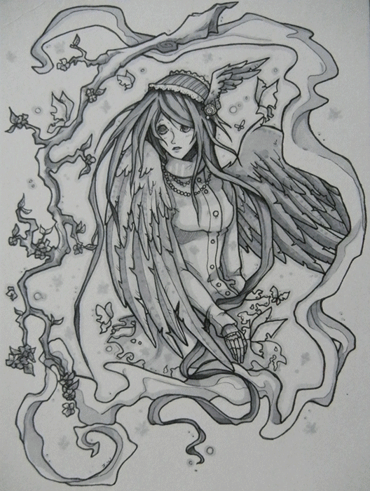 #drawings #fantasy #sad #sadness #solace #traditional #wings #angel #angels #ballpointpen #ballpointpendrawing #branches #flowinghair #monochrome #traditionalart