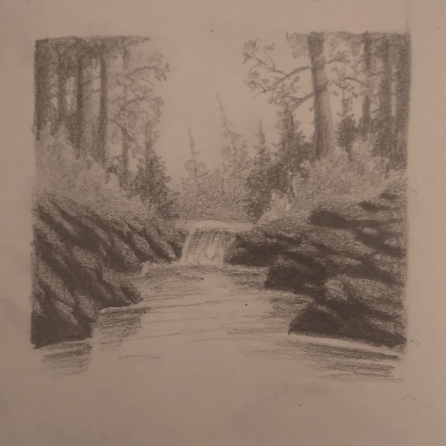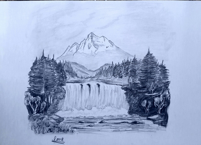 #charcoaldrawing #nature #naturepainting #waterfall #waterfallscenery