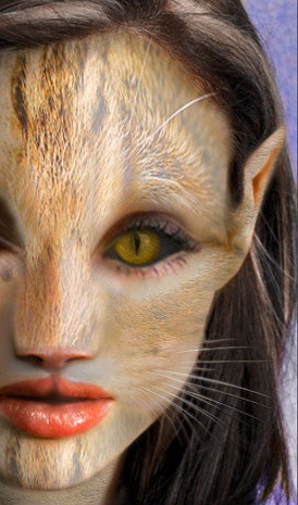 composite of girl and cat texture and eyes to create this fantasy creature