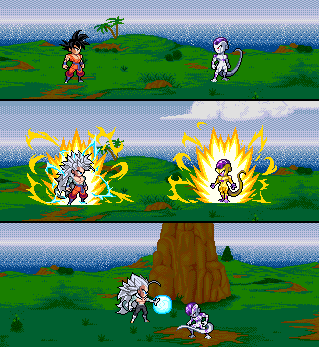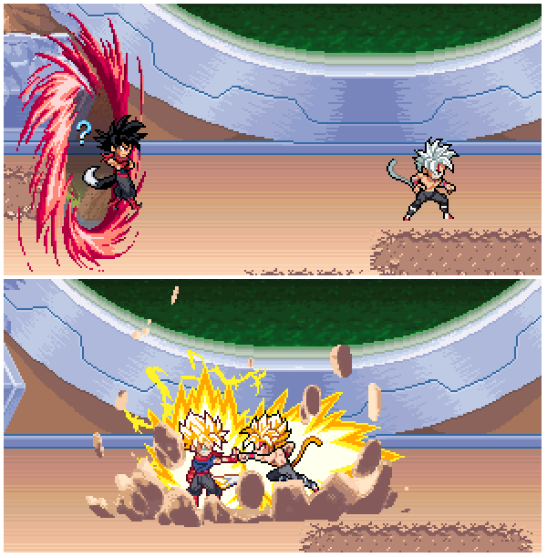 Byte: *Huff* *Huff* Damn...Bardock: *Huff* I'll admit... *Huff* you manage to take on a super saiyan. That's something to be proud of.