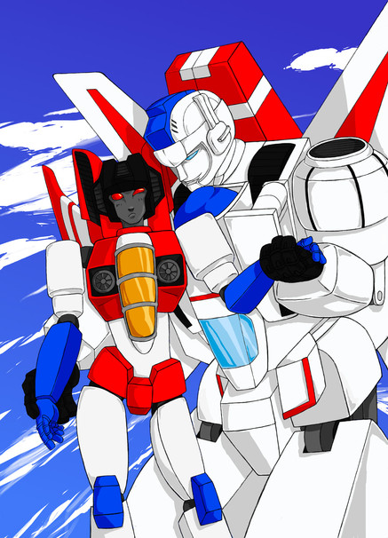 Poor Starscream just looks so miserable and angry while Skyfire looks pretty calm.