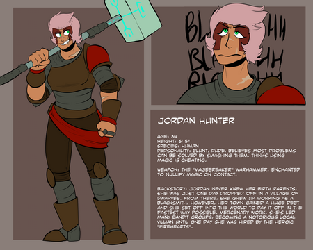 Billy's design is so damn cool. I mean, all the designs you do for your characters are incredible, but Billy's is just so fun. Love the muted palette and the gloves and the hair. And her face!! A+'s all around.