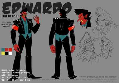 His personality is really starting to jab out (and I say jab because he appears that domineering in personality) and he's departed from the slightly softer appearance he had before. Which, if that's what you're going for, is great! : D