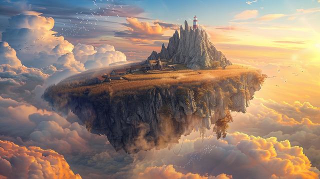The sun shining over a sea of clouds with divine brilliance on the mountain top lighthouse.Related content