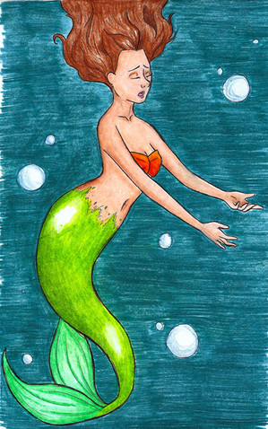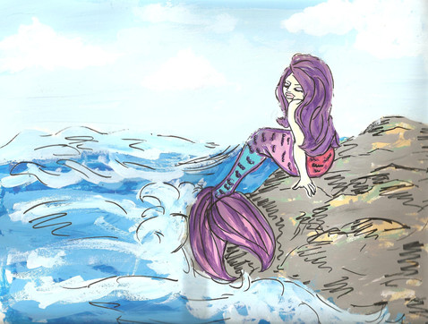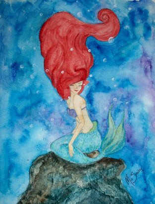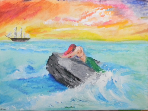 Hans Christian Andersen's The Little mermaid has always been my favourite fairy tale story - I was always so moved by the unconditional love she felt for the prince, and therefore I proceeded to paint her, finally. I tried to capture her innocence and her naturally introverted and dreaming personality (unlike what the Disney makes us believe).This is the full view as painted on canvas.