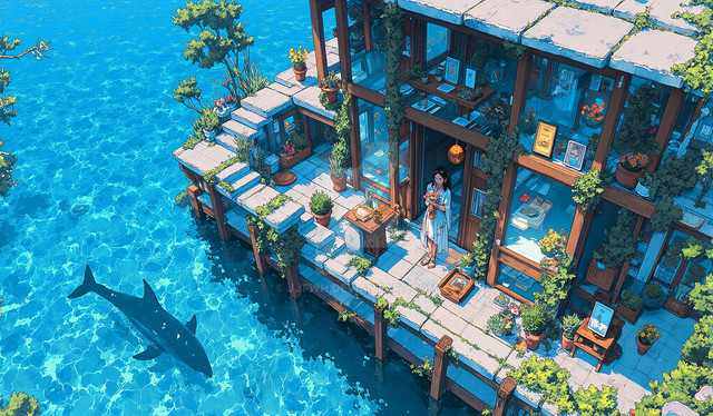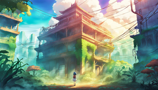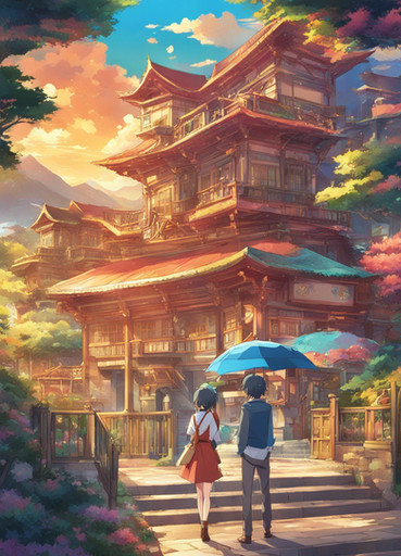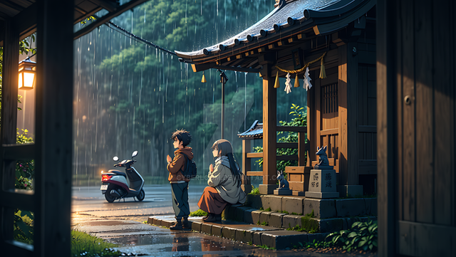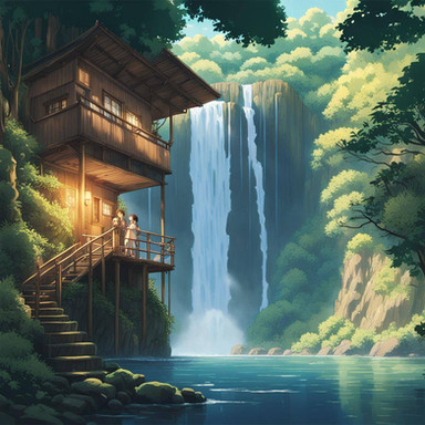 #animestyle #conceptart #digital #fantasy #landscapescenery #photoshop #aiart #girlfemalewoman #idyllic #temple #waterfall #motorcyclegirl