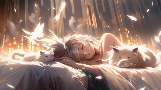 #anime #bed #cat #fanart #fantasy #idyllic #sense #wakingup #frieren #animefanart #desktopbackground #wallpaper #wholesome #widescreen #girlfemalewoman #sousounofrieren