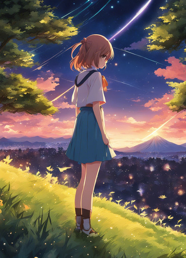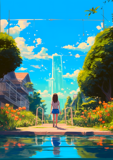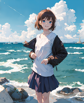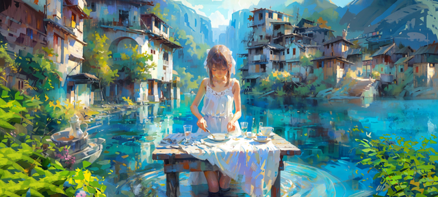 #ai #anime #animestyle #colorful #digital #fantasy #photoshop #skirt #water #animemangagirl #girlfemalewoman #stablediffusion #smiling #lakereflection