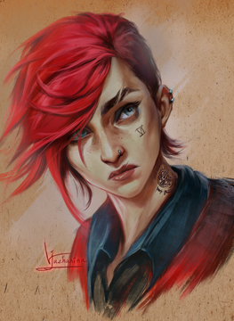 #ai #arcane #digital #vi #digitalpainting #girl #photoshop #portrait #redhairedgirl #tomboy #arcanefanart #arcanenetflix #vi_arcane #stablediffusion