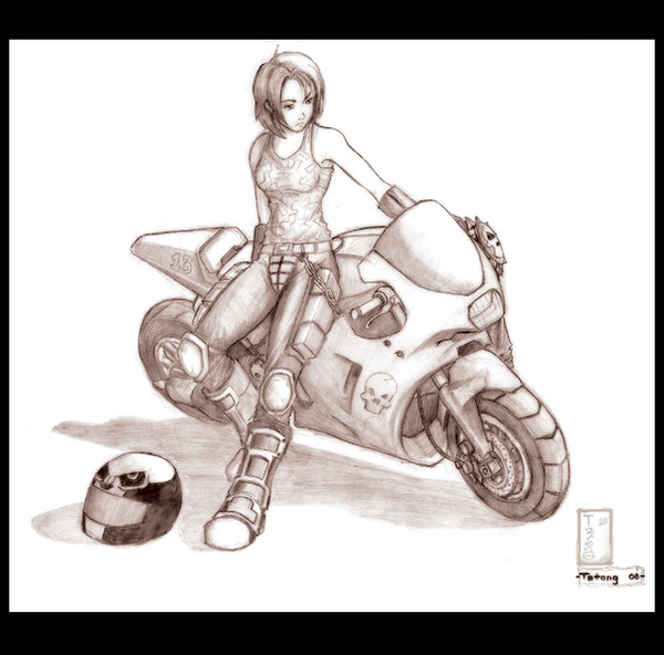 Awesome! I love the bike~ and you shading rocks as always =3 I also like her pose... you're so good at poses ^_^ how do you come up with them all?