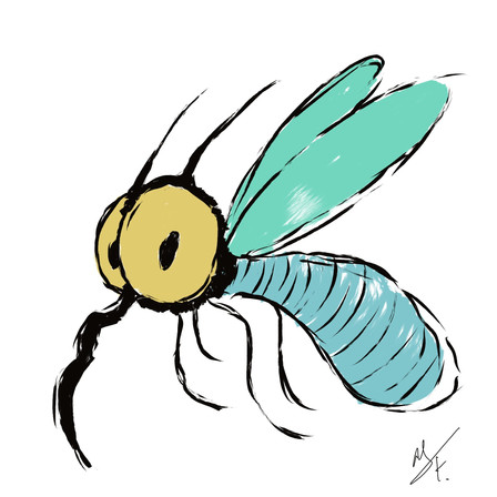 A fly on a leaf. Somethin I made in school.Done with black marker and colored pencils. A4.