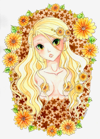 Really nice use of colours, simple contrast between warm and cold bringing the freckles out And thank you to draw the breasts more natural and normal size, appealing, but not being the center of attention, when the freckles are the main subject