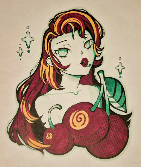 I love freckles and I've always wished I had more of them. They look so pretty!Made with black ballpoint pen, watercolors and gel pens.