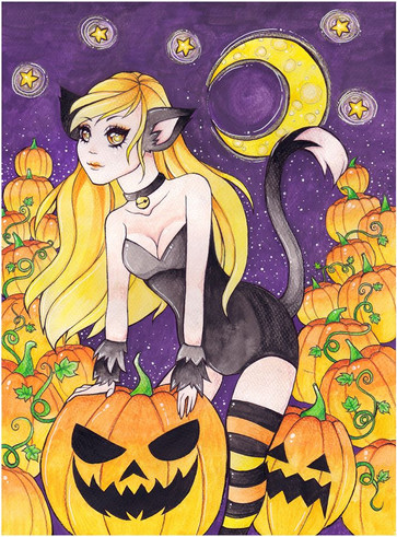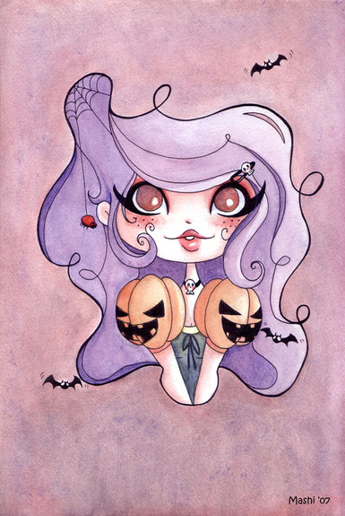 This drawing contains two of my favourite things in drawing: recreating my old artwork and drawing Halloween related stuff. This is a new version of one of my first submissions here on 2010: www.deviantart.com/bitterb/artβ¦It was nice coloring with just colored pencils instead of watercolors for a chance even though I like how my coloring looks more when I use watercolors. Making this little drawing made me really happy after having this break from deviantart again.