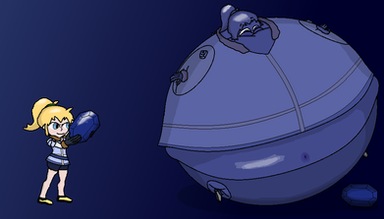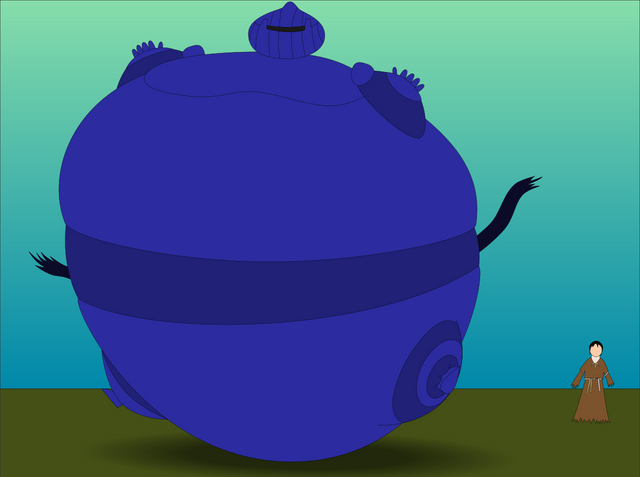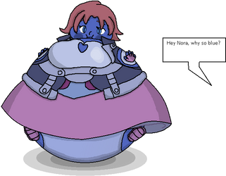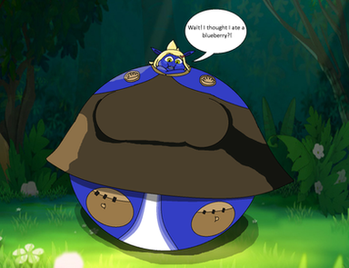 So Poppy was hungry after a battle or two, she came by a bush with what seem to be blueberries. While she have no knowledge with berries, she picked up two and ate them. Soon, her blue skin turned violet, and soon, she begun to swell into a huge blueberry!