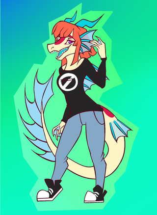 I felt like drawing anthro-fish design! They are a betta fish. They are aggressive, in your face and stubborn.