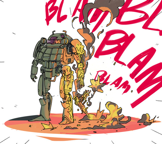 haven't been drawing much the last couple of weeks, so i made this as a warm-up drawing before doing some storyboarding and design work for real, but less exciting, moneymaking projects.hopefully one day a customer will arrive, and ask for animated mechs, and i will be READY