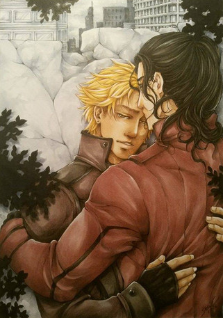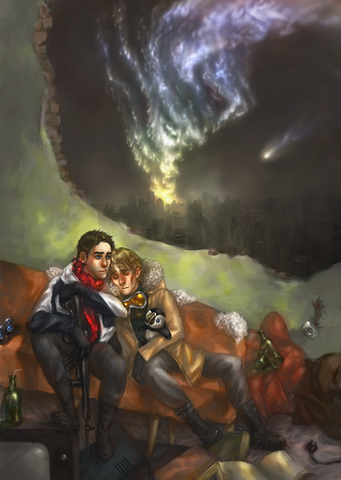 Fill for 's request. She asked me to draw two of her OCs (Shayne Michaelis and Ryan Mitchell ) together in an apocalyptic theme~I really do hope that this one turned to be yer liking, Rose~ At least I enjoyed drawing these two gay guys of yers.
