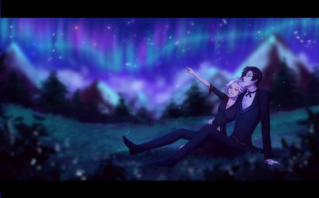 #aph #commission #couple #digitalart #dusk #magic #oc #bjatterflai #ryuokowolf #romantic #starrynight #aphbelgium #pointcommission #canonxocshipping