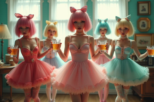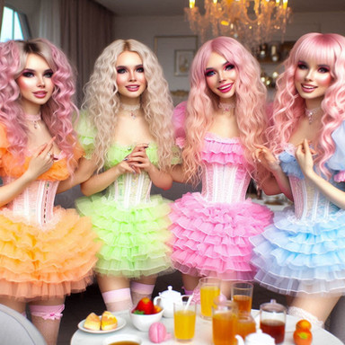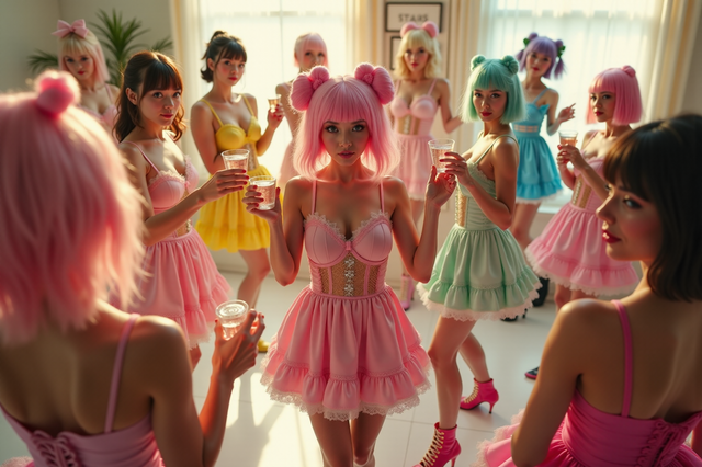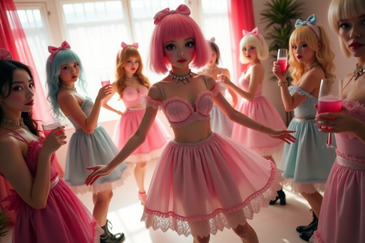 #beauty #dress #photorealistic #glamour #ai #animegao #bishoujo #crossdressing #doll #femboy #grouppicture #makeup #sissy #wallpaper #wig #pastelaesthetic #flux1d