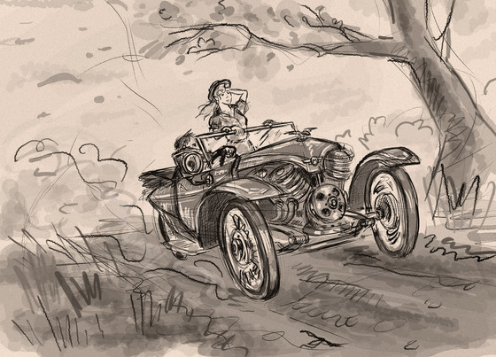 Felt up to colouring my old Featured pic [link] (obviously this will replace it, ha ha). Just my pencil scan and hoary old Photoshop 6 (time for a new computer!).It always amused me that with this picture I managed to acheive something that might be called 'vehicular contrapposto'.