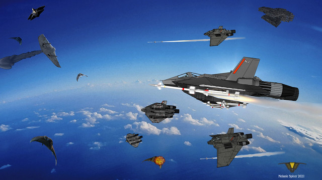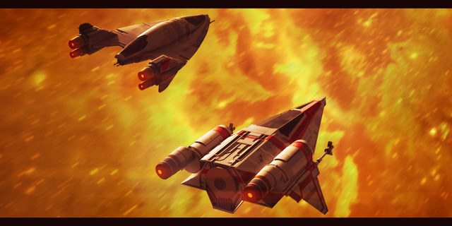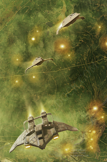 Responding to precision airstrikes from orbit, the young Lt. Kira Nerys takes lead in her 2-person Bajoran Raider, followed up by her wing-man, as they scramble to intercept Cardassian forces bombarding Bajoran resistance positions in the Eastern province during the Occupation.