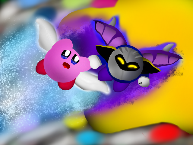 another personal idea of mine would be to maybe draw kirby to the left side and in the midst of when the apple falls, it's direction could be drawn to where kirby is inhaling. kind of like your average boss fight with whispy and all the more a fun way to defy gravity