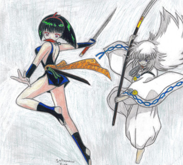 Another scene from Forgotten, though, this one has been written.Sesshomaru versus Noriko. A jealous, power-greedy female Inuyokai that wanted Sesshomaru to marry her. However, Sesshomaru refused and now she and her loyaltists are fighting Sesshomaru and his followers until he gives into her demands.