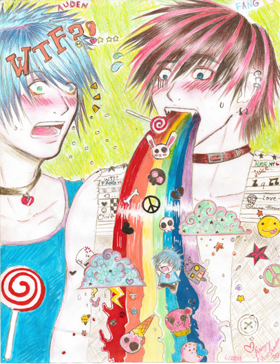 lol i would love to puke if this were the case...damn laws of physics...its like she's pukeing the little innocent girl she used to be seeing how..."grown up" she is very nice art work really put a smile on my face^^