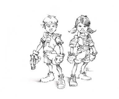 Here are two character sketches I did for the first draft of drawings for my portfolio. I'm going to clean them (for sure arrange some anoying things about the designs) and color them. Hope I'm gonna unlock my shape design variation far away part of my brain since I didn't draw for two weeks. The character sizes and shapes don't convince me as "very good" designs... They are still too generic. Shit it's hard to get back after two weeks. Hope you like anywaysRelated content