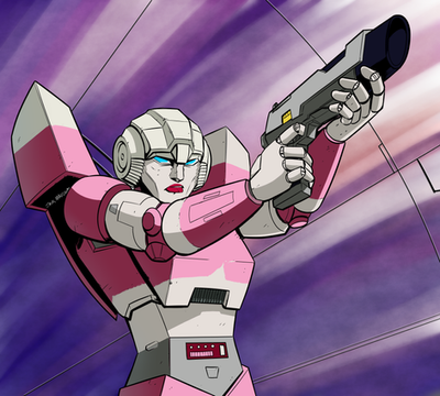 Since Raider is basically the TF version of Lara Croft in my universe, I wanted to get a pic of her in the same pose as Lara herself from the original Tomb Raider movie poster.Art commissioned from MachSabre