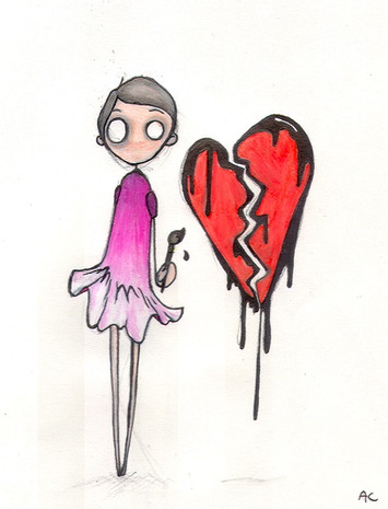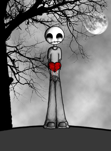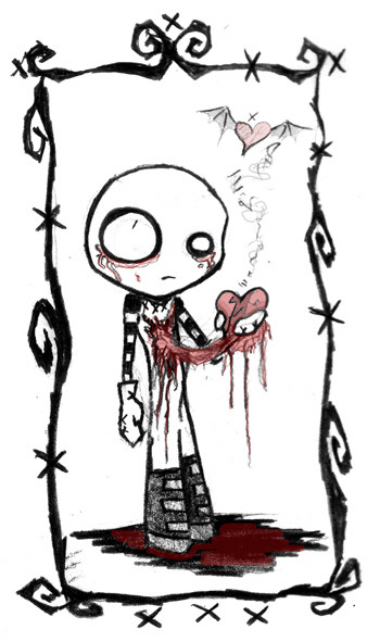 Oh, I pity the poor heart-stolen one. It looks sort of Zim-like...although the creatures are only vaguely human, they inspire sympathy nonetheless. The expression on the hurt creature is truly moving...I've seen a lot of pictures like this, but I think a simple illustration does it best.