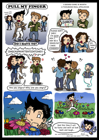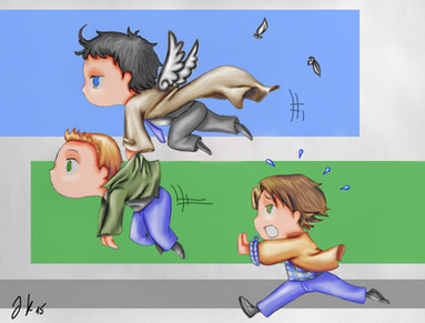 Gabriel had doubted that Balthazar and Castiel would be suitable flying partners, since Balthazar's first instinct was to dive head-first off a cloud and Castiel pretty much had to be pushed off, but he needn't have worried; both were natural born flyers and could still be seen playing together long after the stars had come out...~~~~~~~~~~~~~~~~~~~~~~~~~