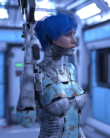 Sexy punk marine in a high tech pressurized e.v.a. space suit