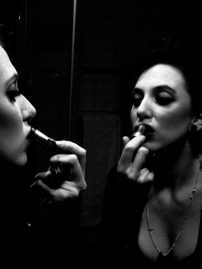 Quinn putting on my lipstick.Copyright Fox Harvard [link]