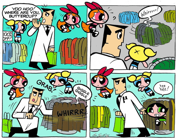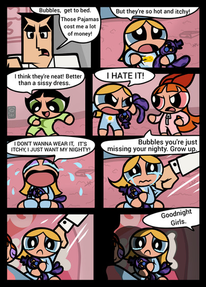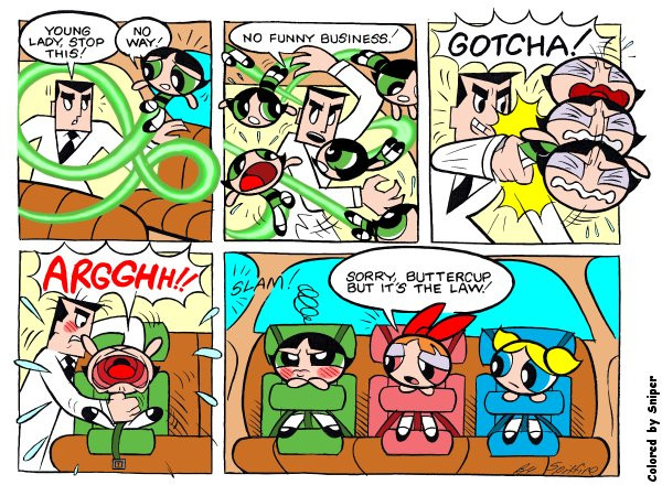 One of my favorites and also popular with some of the Powerpuff Girls fans!(It was based on a childhood memory where I actually tried to strip after I was swatted by the father on a car trip, BTW.)