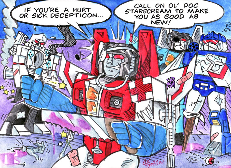 Hahaha good one i actually alwas pictured screamer as the Con medic. You almost always see HIM doing the repair etc. ( like helping warp put on his wing again or yanking out the asteroide piece from megs' shoulder)